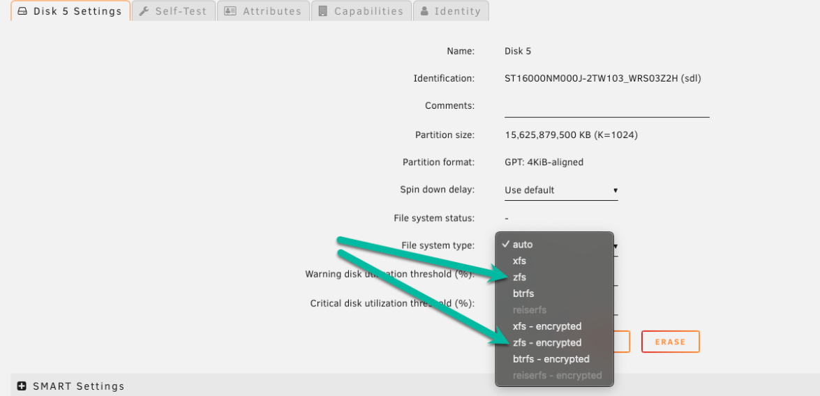 raptor)以打开其配置屏幕。 - 将文件系统类型设置为